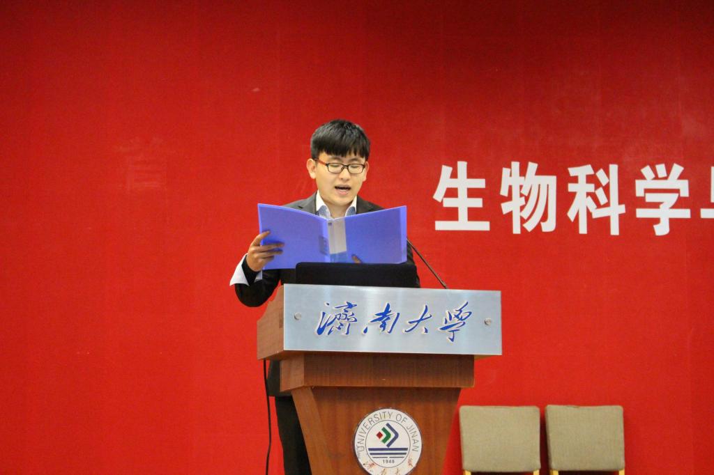 我院第四届学生会副主席温朝阳同学代表上届学生会成员上台发言,他向大家分享了在学生会的收获以及未来的期望,提出身为学生会的一员,应当对学生会怀有一份热爱的感情、一份担当的责任、一种主人翁的意识,努力将生科院学生会变得更加温暖而美好。之后,第五届学生会主席于海鹏上台发言,他向在座的同学提出几点期望,并表示欢迎大家对学生会工作的监督与建议。紧接着,2018级新生干事代表王瀚浦同学上台发言并带领18级学生干事庄严宣誓。
