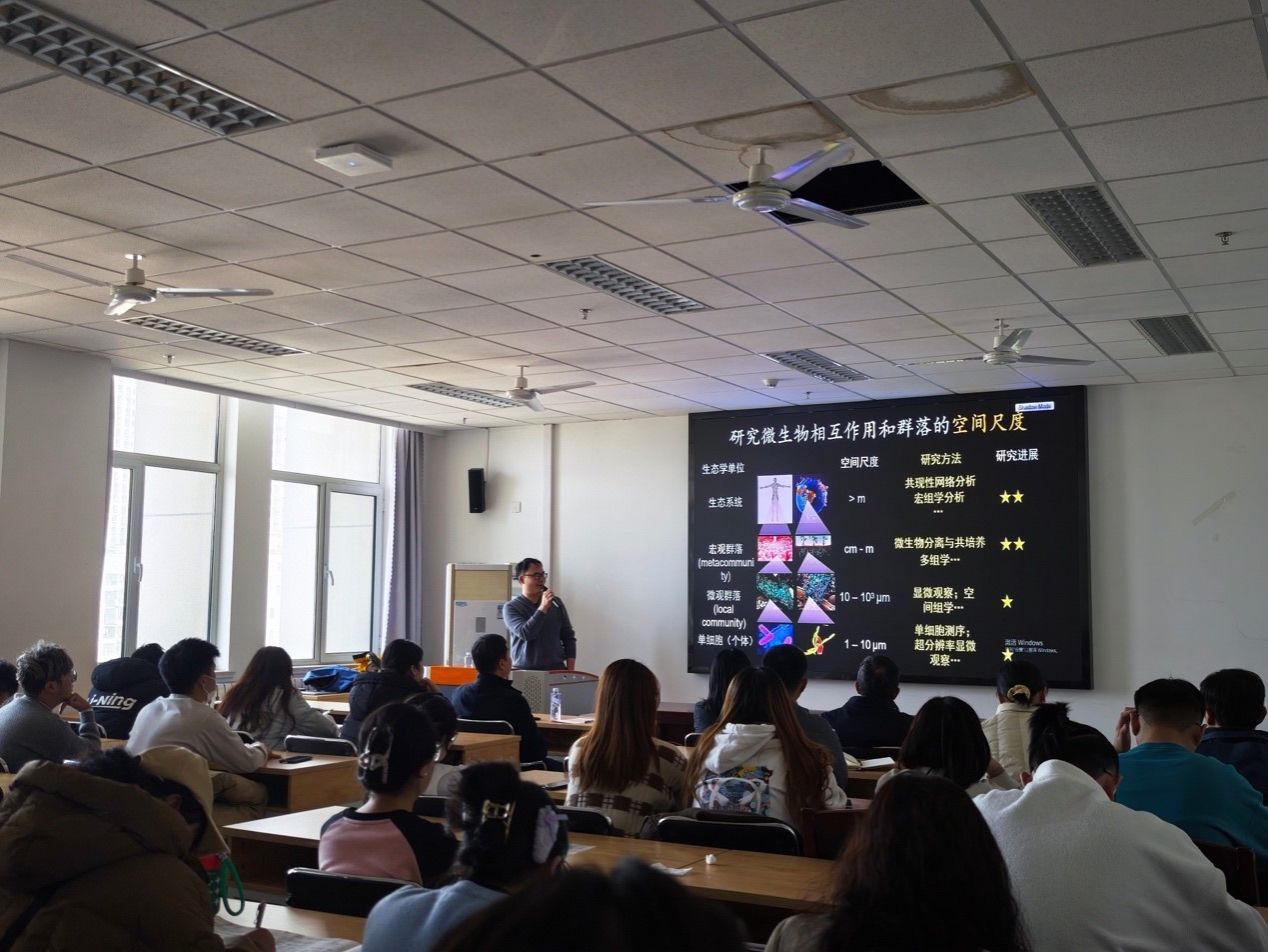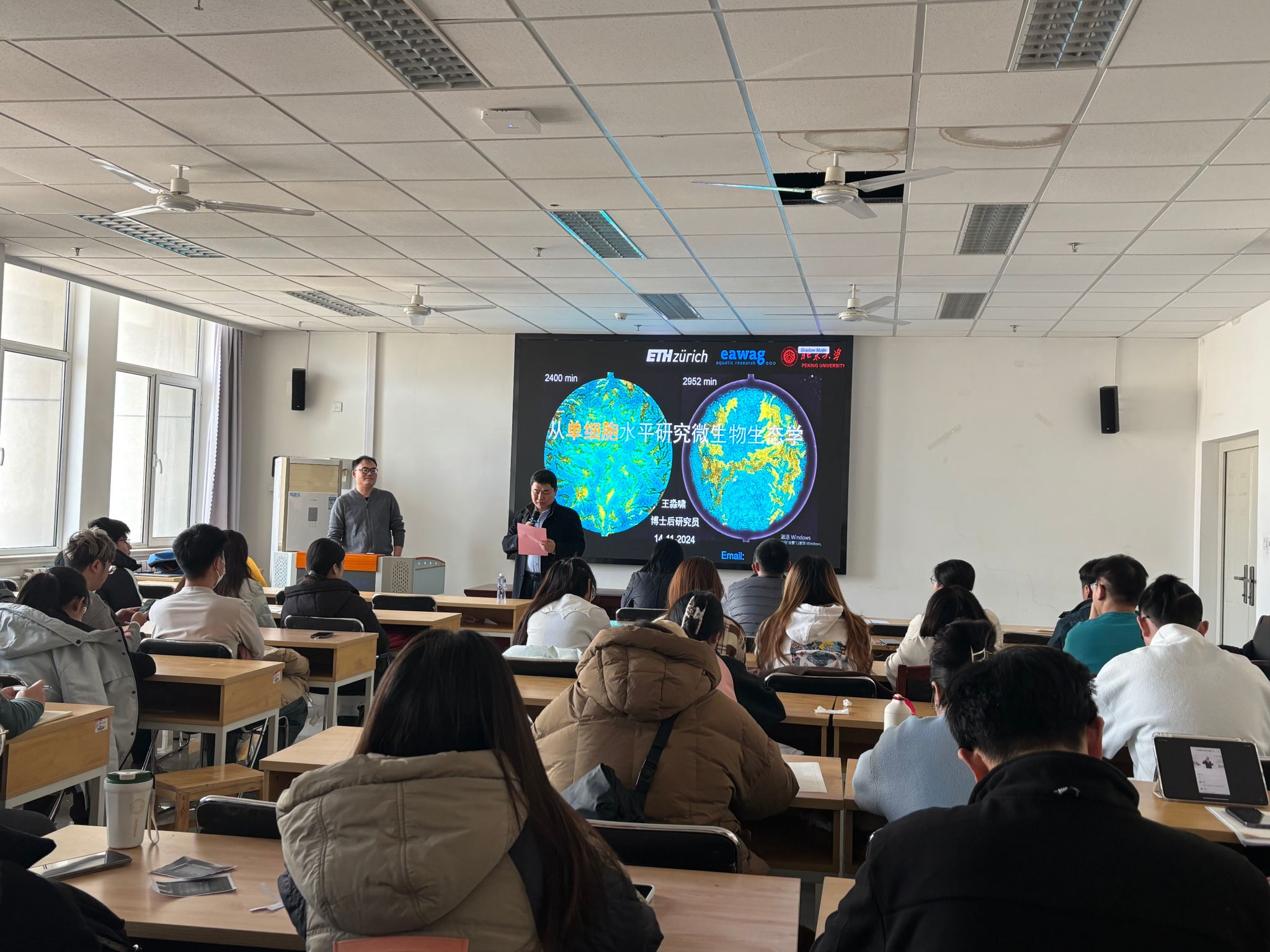 12月11日,瑞士苏黎世联邦理工学院博士后研究员王淼啸应邀来LETOU国际米兰官网开展学术交流,并以“从单细胞水平研究微生物生态学”为题作学术报告。学院班子成员,教师代表,研究生、本科生代表参加活动。报告会由学院副院长李强主持。