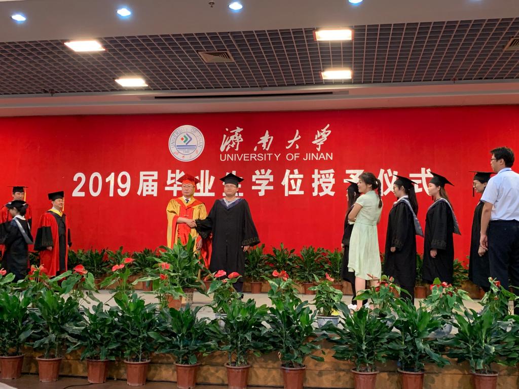 随后陈卫东书记宣读授予学位的毕业生名单,校长张士强为2019届毕业生授学位。拨穗、握手、合影,并向毕业生们致以祝贺和勉励。学院领导、老师一一与毕业生握手话别。
