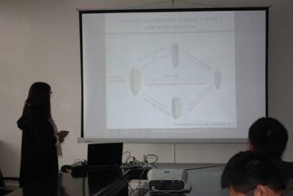 2016年11月2日上午,学院在特教楼B1006举办了“青年教师学术沙龙”第十二次活动,本次沙龙活动邀请青年教师车荣会博士做学术报告。此次学术报告的题目为“Control of grain size and rice yield by GL2-mediated brassinosteroid responses(GL2通过BR反应调控水稻籽粒大小及产量)”。学院2015年1月1日以后正式入职的教师、人力资源管理办公室和科研管理办公室的负责老师参加了本次沙龙活动。活动由闫峰老师主持。