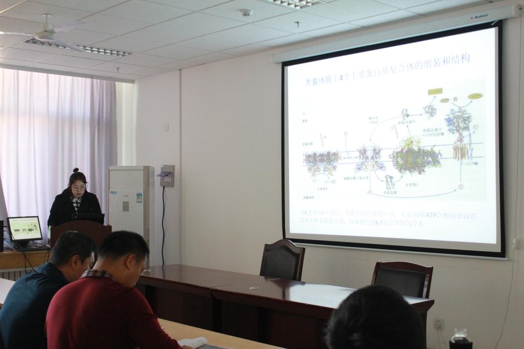 宋佳丽等11名2016级硕士研究生同学结合自己的研究方向及专业背景,以学术报告的形式汇报了自己的研究工作。宋佳丽同学以“基于天然产物与迈克受体杂合的抗肿瘤活性小分子的设计、合成与作用机制研究”为主题向大家展示了自己的研究内容;周飞龙同学汇报的主题为“纳米载药胶束在抗炎方面的应用”;李佩同学为大家讲解了关于“雨生红球藻虾青素累积、虾青素合成相关酶基因表达和抗氧化指标”等方面的知识;林雪乔以“玉米NDH-PSI复合体的结构研究”为主题作报告;刘明媚、李亚美同学分别围绕“不同光照条件下PSI结构研究”、“Streptomyces dengpaensisXZHG99遗传操作体系的建立”进行详细介绍;此外,王敬锋、何林林、高幸幸、张雪、郝委委等同学分别带来了“基于目标物介导等温酶放大的新型光学生物传感器”、“实时荧光定量PCR技术研究方法及影响因素”、“玉米小粒基因的克隆及功能分析”、“基于贵金属纳米材料的新型光学传感器构建及其应用于肿瘤标志物检测研究”、“基于天然草本提取高效解酒组分及其解酒机理的研究”等报告。报告会现场学术气氛浓厚,与会同学结合自己的研究背景,就自己感兴趣的问题,与作报告的同学进行了交流探讨。同时与会教师也根据每人的情况给出相应的指导意见和建议。