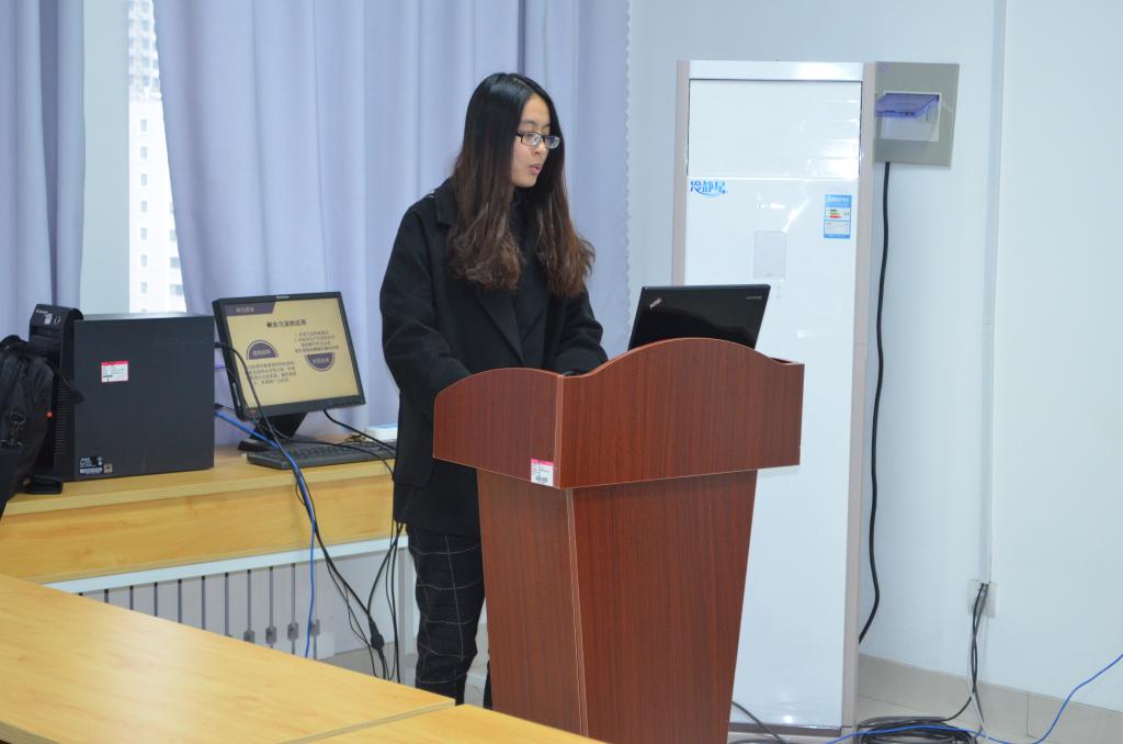 随后,李枘枘等14名硕士研究生同学结合自己的研究方向及专业背景,以学术报告的形式汇报了自己的研究工作。李枘枘以“环氧丙烷皂化废水剩余污泥水解酸化的研究”为题展示了自己的研究内容;宫岩以“动脉粥样硬化的发生及炎症反应”为主题向大家汇报了自己的研究内容;李秀秀和贺菲分别围绕“LHCA红移现象的研究”和“湛江红树林代谢产物抗污损活性研究”进行详细介绍;成志强、闻艺分别为大家讲解了“IAA-Tacrine类衍生物设计合成及生物活性测试”和“两性霉素B载药纳米胶束在体外溶解,抗菌及毒性研究”。徐红梅、贺甜甜、吴聪、牛林林和李为珺分别讲述了“AmB静脉注射剂抗真菌效力研究”、“薄叶山橙中化学成分的研究”、“苔类植物地钱中挥发油的抗真菌活性研究”、“葡萄糖二酸生成合成工程菌株的构建与表达”和“玉米农艺性状基因的动态关联分析”等内容。最后,韩丽娜、于倩倩和梁小利分别作了题为“筛选能够抑制乳腺癌细胞生长的组蛋白去乙酰化酶抑制剂及其初步机制研究”、“莱茵衣藻光合蛋白的转录组和翻译组”和“大麦耐低氮基因功能分析”的报告。报告会现场学术气氛浓厚,与会师生分别就自己感兴趣的问题,与作报告的同学进行了交流探讨。
