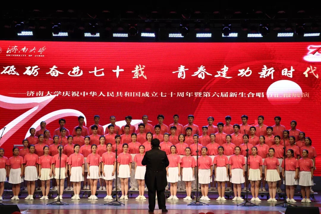 七十征程天下定,四海笙歌国事兴。蓬勃发展盛世至,惟愿祖国海疆平。星光闪耀,歌声嘹亮,此次新生合唱节以“砥砺奋进七十载,青春建功新时代”为主题,展现出新时代青年积极向上的精神风貌和青春高昂的斗志,表达了对党和祖国的热爱!
