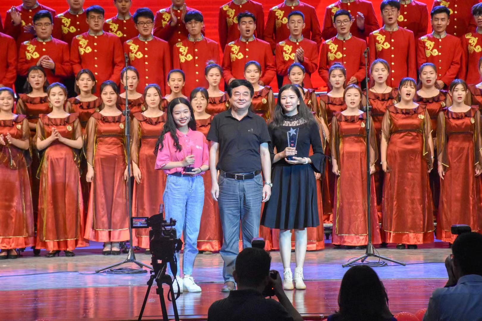 自选曲目阶段,伴随着轻快活泼、热情洋溢的旋律,同学们倾情演绎《新编沂蒙山小调》。歌声既有柔美,又有激情,将热爱祖国、热爱党的真挚情感表现得淋漓尽致,赢得了现场阵阵掌声。最终以全场最高分获得了一等奖的佳绩。