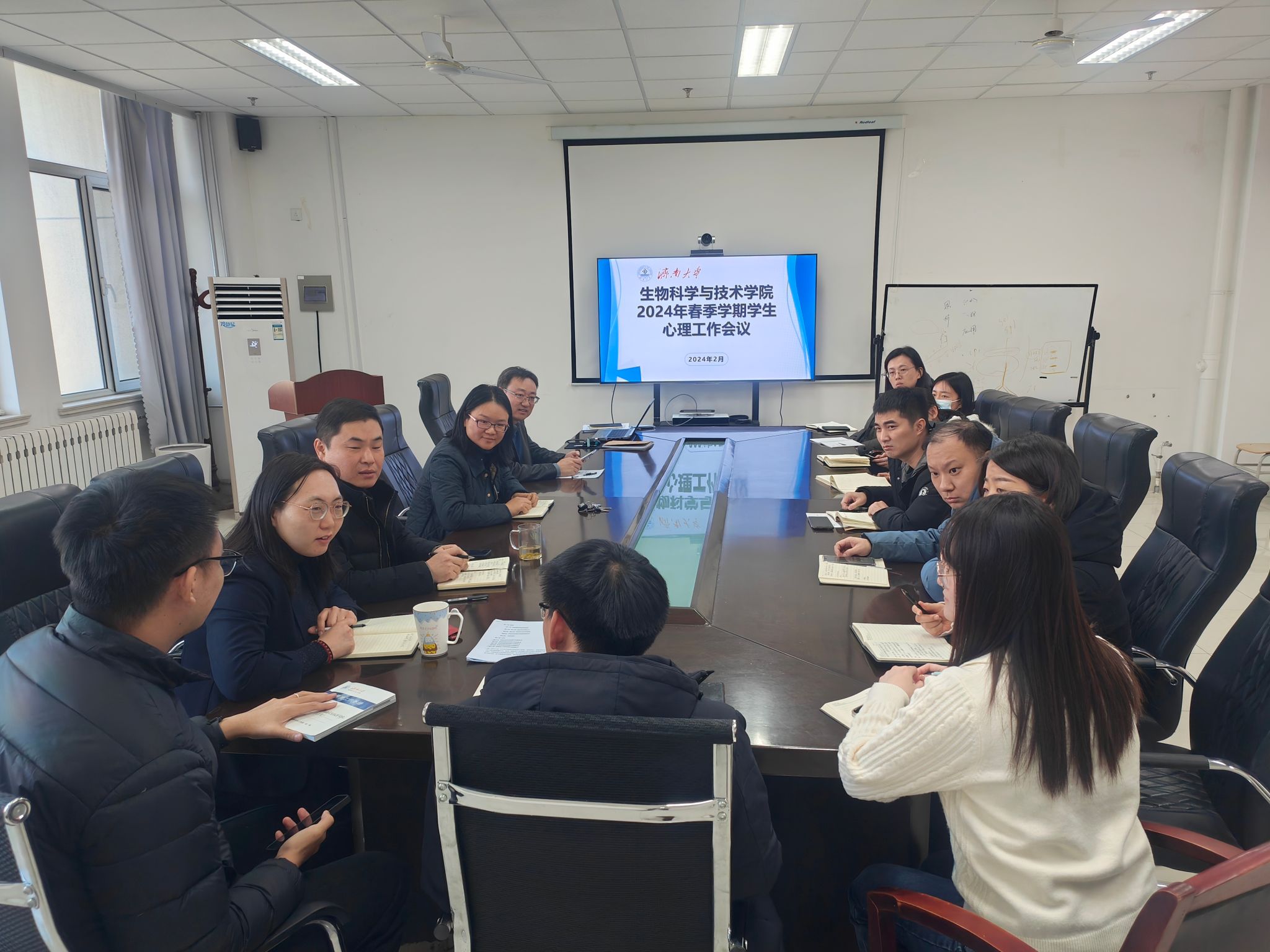 会议首先了回顾了2023年学院心理健康教育工作情况,从心理普查结果、重点关注对象、心理危机案例、心理工作特色等角度全面总结了当前学院心理工作的基本情况,确定新学期学生心理工作的重点方向。