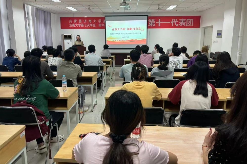 为加强毕业生理想信念教育和爱国主义教育,激励全体毕业生勇立潮头、勇挑重担,在推进强国建设、民族复兴伟业中展现青春作为、彰显青春风采、贡献青春力量,6月18日,LETOU国际米兰官网党委副书记、院长秦晓春,党委副书记、副院长武芳为毕业生上最后一堂思政课。课上,秦晓春围绕“筑牢政治忠诚 坚定理想信念”“担当时代责任 勇于砥砺奋斗”“练就过硬本领 锤炼品德修为”三个主题为毕业生上了一堂生动的思政课,号召同学们永葆初心、明德修身、增长才干、为民奉献,奋力书写青春华章。武芳与同学们共同回忆大学四年的点点滴滴,她深情寄语毕业生:凡我在处、便是济大,无论何时何地,母校永远是同学们的家。希望同学们在今后的工作生活中既要仰望星空、树立鸿鹄之志,又要脚踏实地、低调本分做事,努力成长为顶天立地的济大生科人。