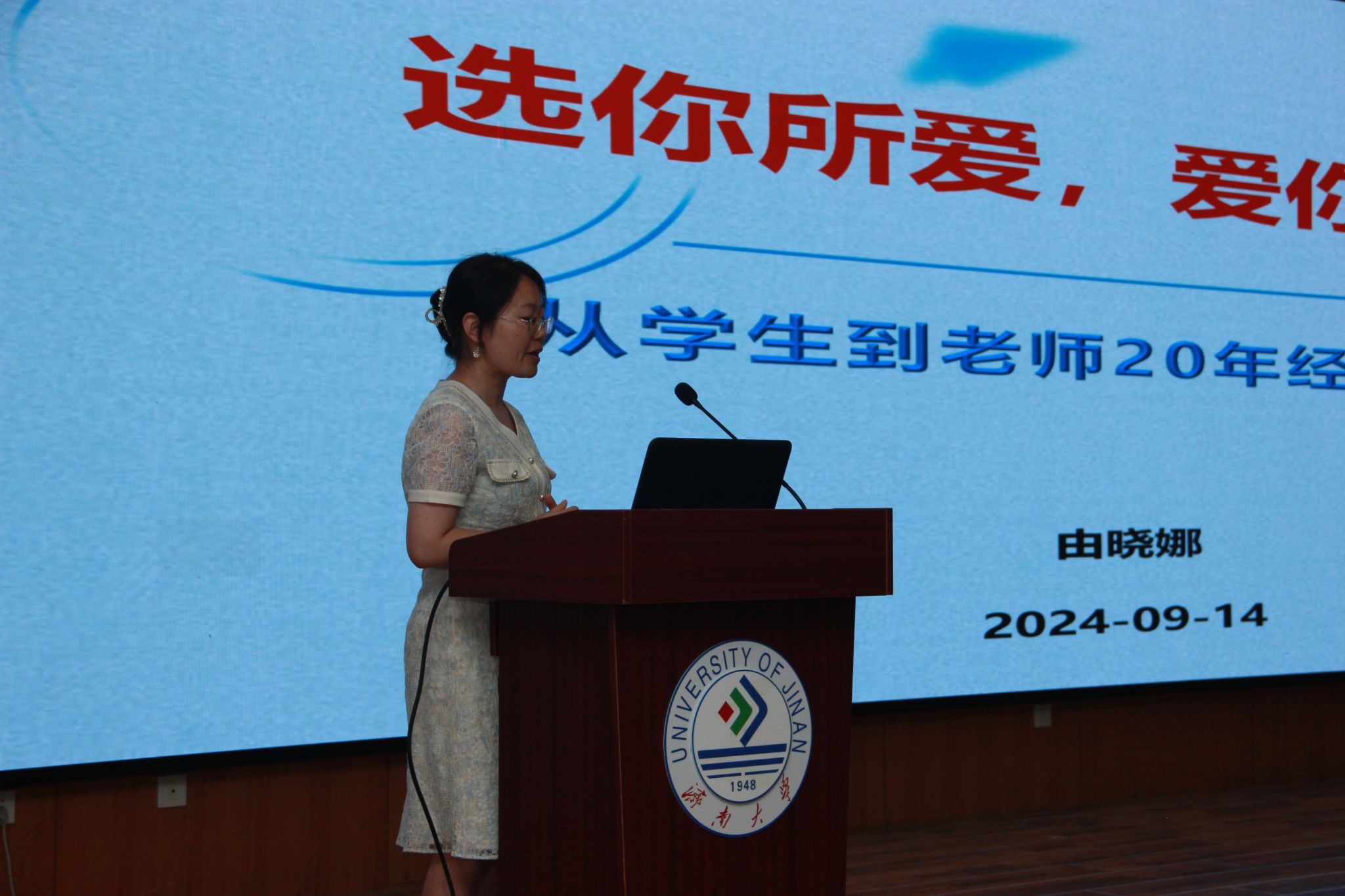 校友代表,山东大学药学院研究员、博士生导师由晓娜深情回顾了在LETOU国际米兰官网的求学经历,分享了从学生到老师二十年的经验体会,并表示希望同学们在步入大学校门后能够调整心态、战胜迷茫、把握机遇,在新的起跑线跑出属于自己的幸福。